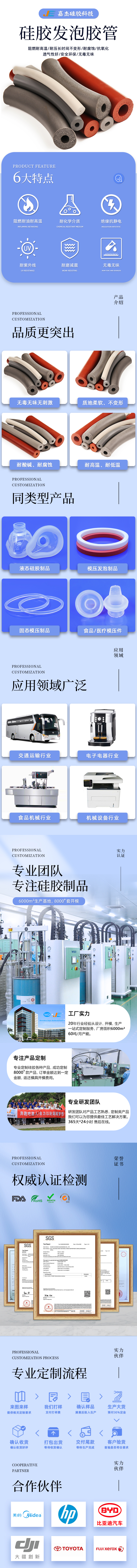 1.光面管表面光潔:良好的表層不粘性、透氣性好 2.耐壓縮永變形:耐拉、耐壓、不易折曲、彈性好、通氣效率高 3.耐高溫/阻燃:耐高低溫-80℃至250℃,可在150度下幾乎可以使用而無性能變化;可在200度下連續使用10,000小時;在350度下亦可使用一段時間。